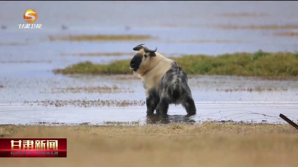 这只羚牛可不常见,它也留恋尕海湖里香甜的水草和风景。